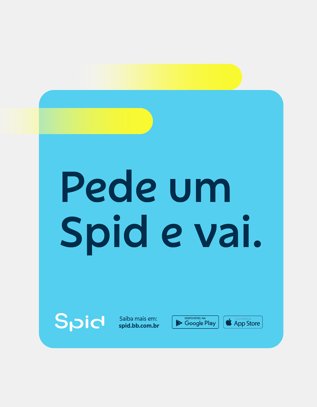 O projeto - idealizado pelo Banco do Brasil - veio para transformar o ir-e-vir dos servidores, parceiros e stakeholders do funcionalismo público brasileiro através de um aplicativo de locomoção. Spid unifica em uma só plataforma os principais players de mobilidade atuantes no Brasil e indica qual a melhor corrida naquele momento, considerando preço e tempo. Para sua identidade, era fundamental criar um sistema que estivesse no centro dos demais aplicativos de transporte, e carregasse a diferenciação e o destaque necessários para acompanhar mais de 1 milhão de servidores pelo Brasil. Pela integração entre os dois, a identidade do Banco do Brasil deveria estar presente no universo de Spid. Utilizamos suas cores e tipografias de forma dinâmica, para criar uma identidade energética e calorosa.